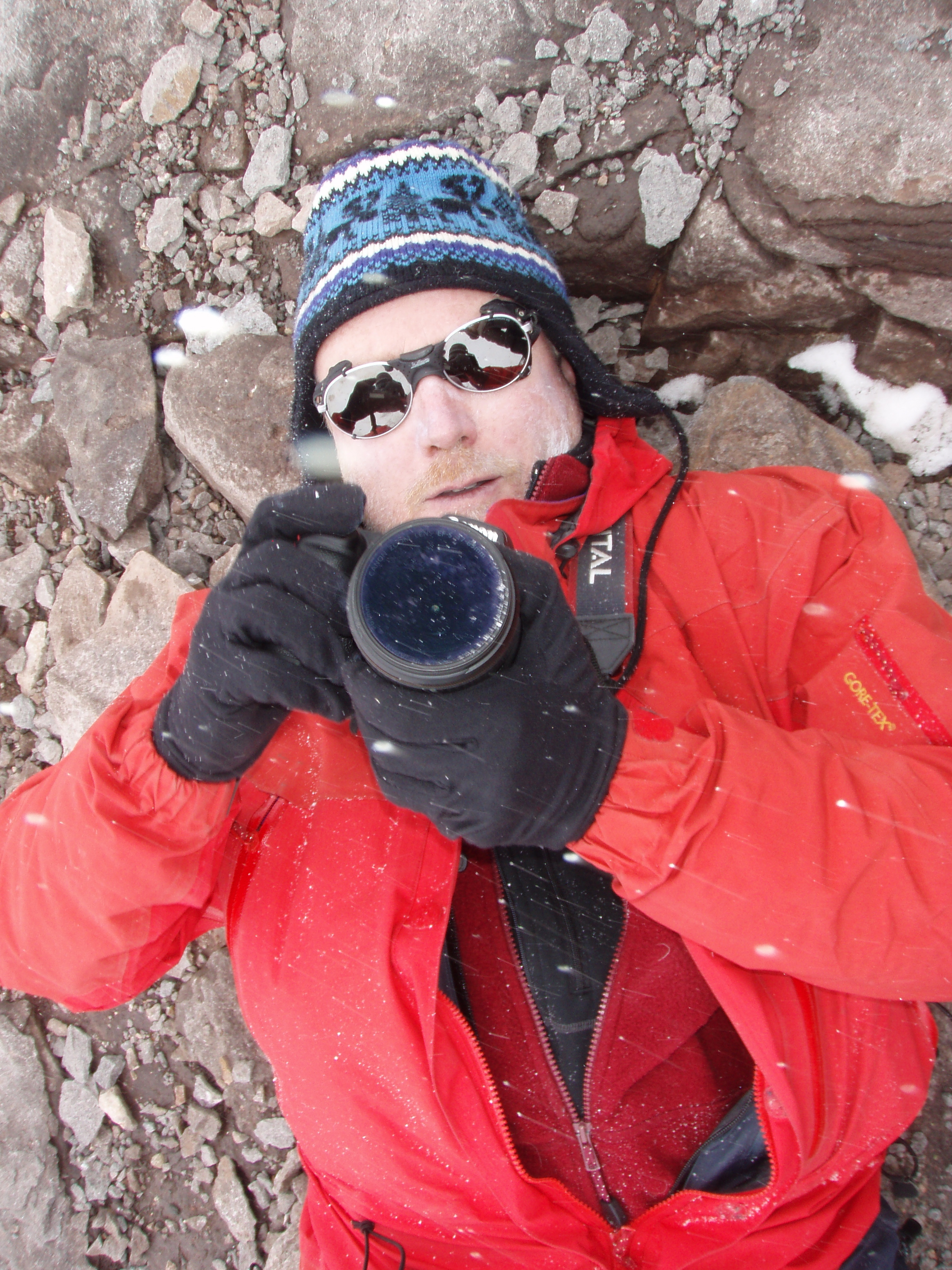 The shot accompanying this post was taken as I lay on the summit of Aconcagua in Argentina. Trying to breath at 22,900+ feet, watching a raging storm rolling in, and thinking of the great red wine and BBQ in Mendoza. It was my third attempt and I learned a bit about preparation and tenacity at the same time. I guess I’m a slow learner.